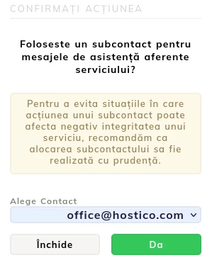 Activation of technical support on sub-contacts in the Hostico account: steps for creating, configuring, and managing sub-contacts for services.