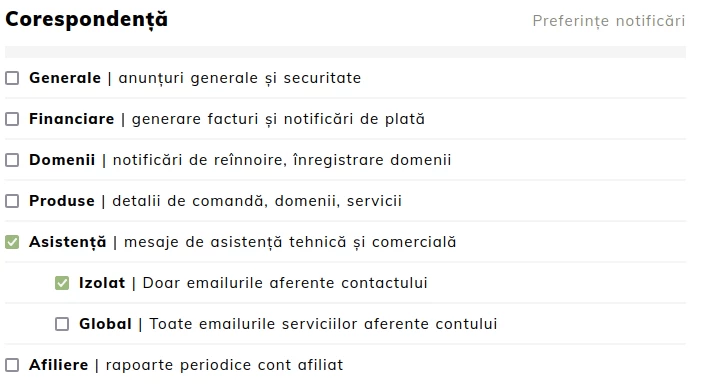 • Global - Correspondence will be sent for all services held in the account.