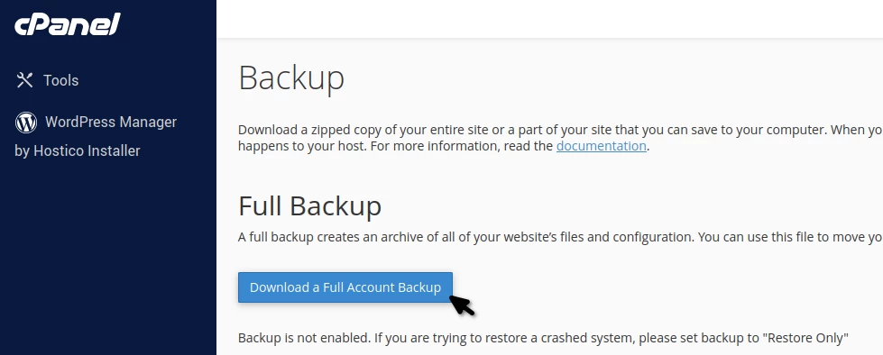 Creating a full backup in cPanel