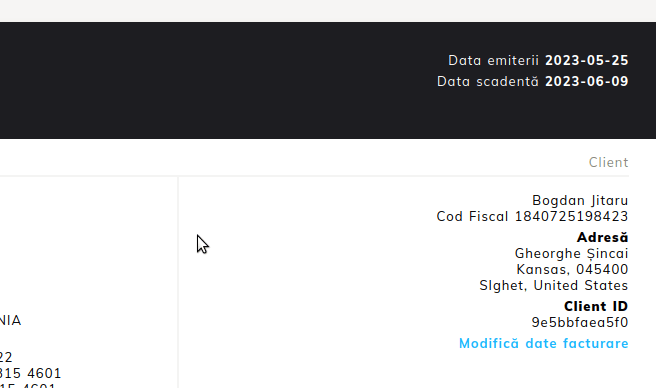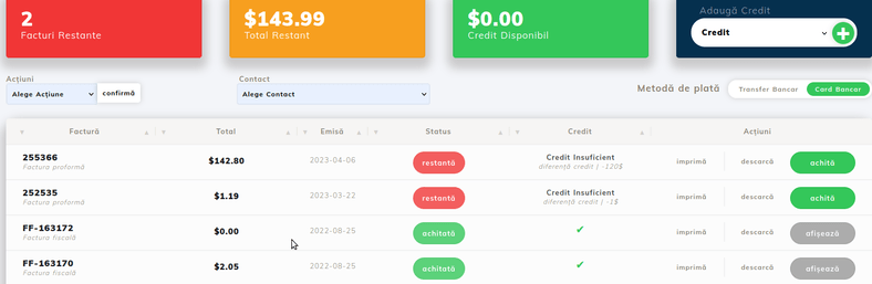 2. Credit Card - With this payment method, the payer cannot be directly identified, and the invoice will be issued directly based on the data found in the proforma. - The modification of pro formas can be performed multiple times; if the subcontact was initially filled out incorrectly, it can be revised and the procedure requested again;