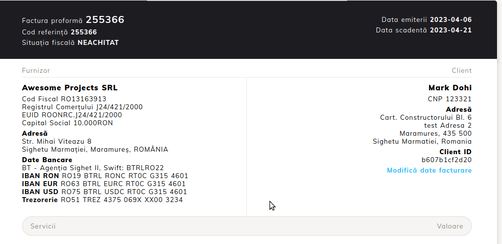 1. Bank Transfer - The name and CUI of the company must be specified by the payer or in the footer under the payer's details;