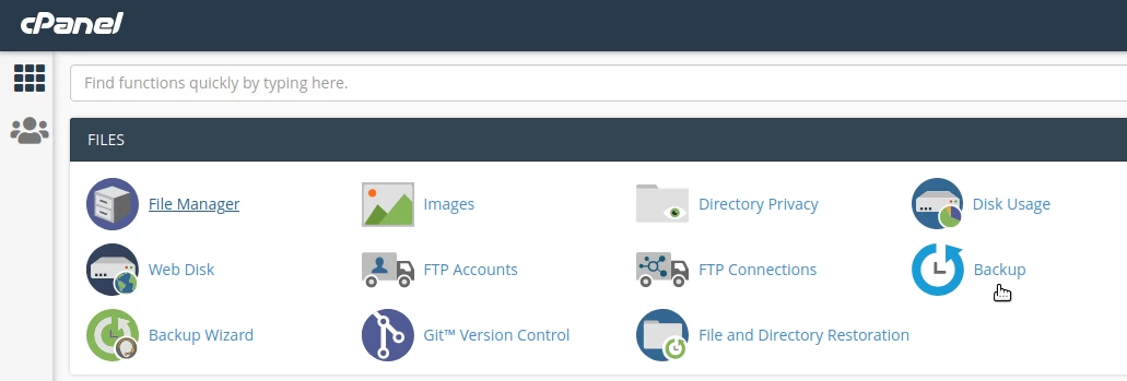 • After logging into the cPanel control panel, in the interface that will be displayed, we look for the "Files" section and there select "Backup"